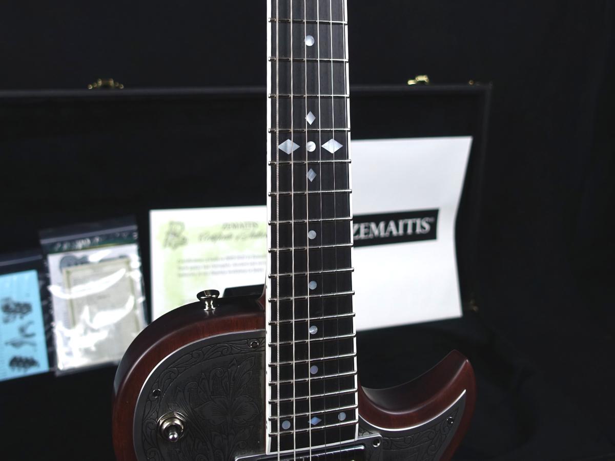 厳選された最高品質のマホガニーを使用し、薄めに仕上げられたネック、グレードの高いエボニー・フィンガーボードといった現在入手できる最高品質のウッド・マテリアルにゼマイティス・オリジナルのアルミ合金を使用したブリッジ&テイルピースやピックアップ・リングを組み合わせることで、脈々と続くゼマイティスのメタル・フロント特有のトーンを継承しています。