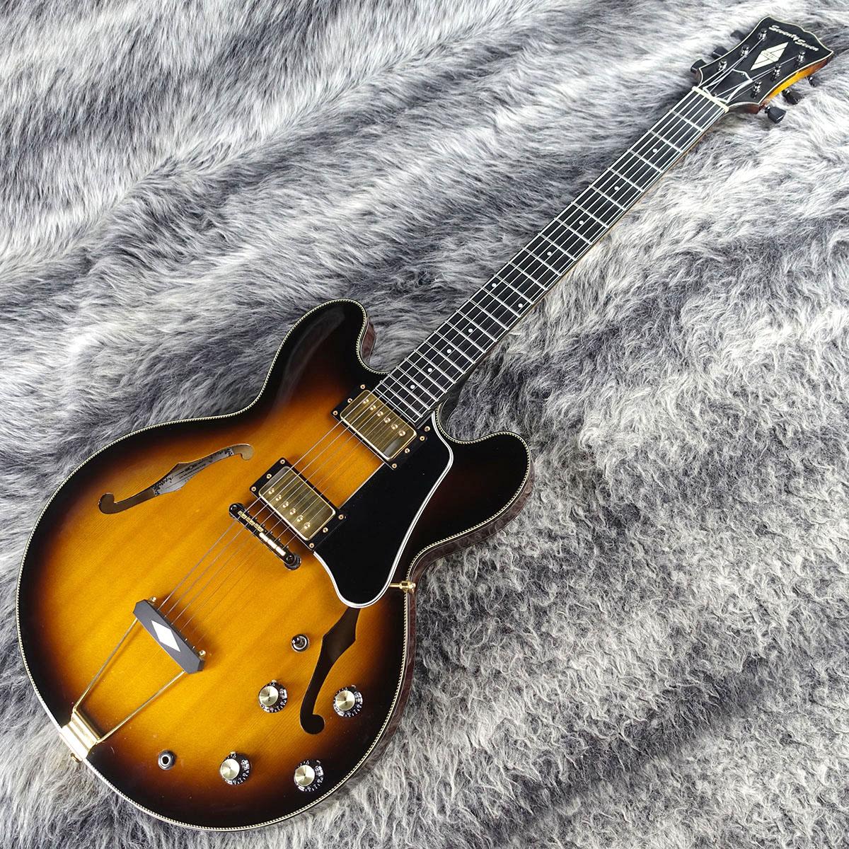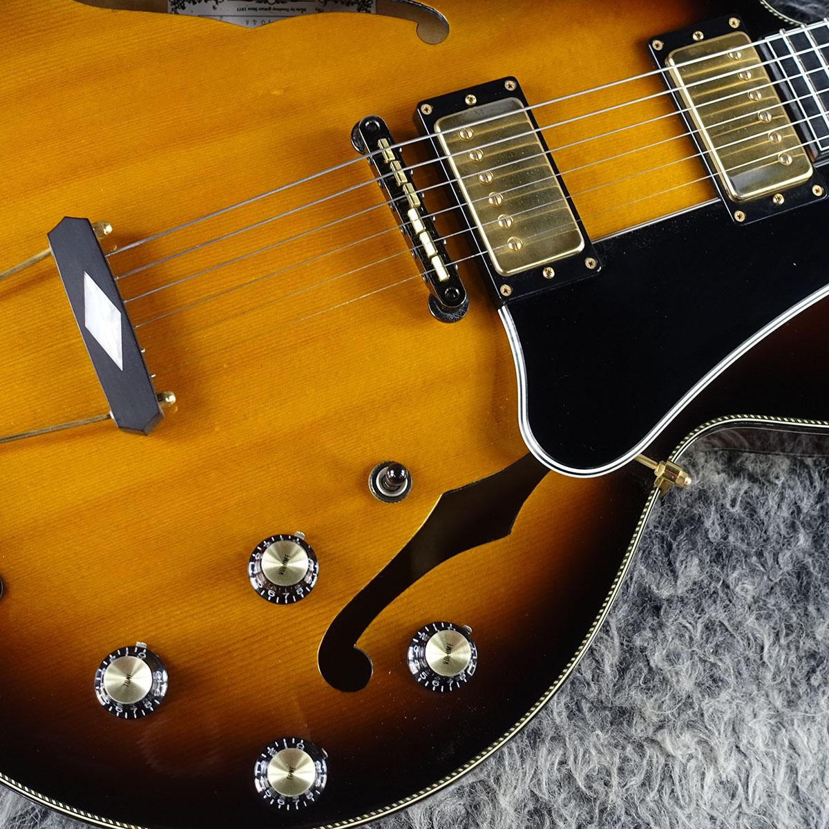 市場で見かける事の少ないモデルになります。フルアコ構造ならではの軽量な点も見逃せません。