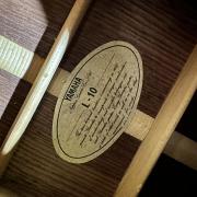 本機種L-10は、当時としては価格を抑えたラインナップながらも、トップにはエゾ松単板、サイドとバックにはハカランダ単板が使用されており今となっては贅沢なスペックを持った一本です。