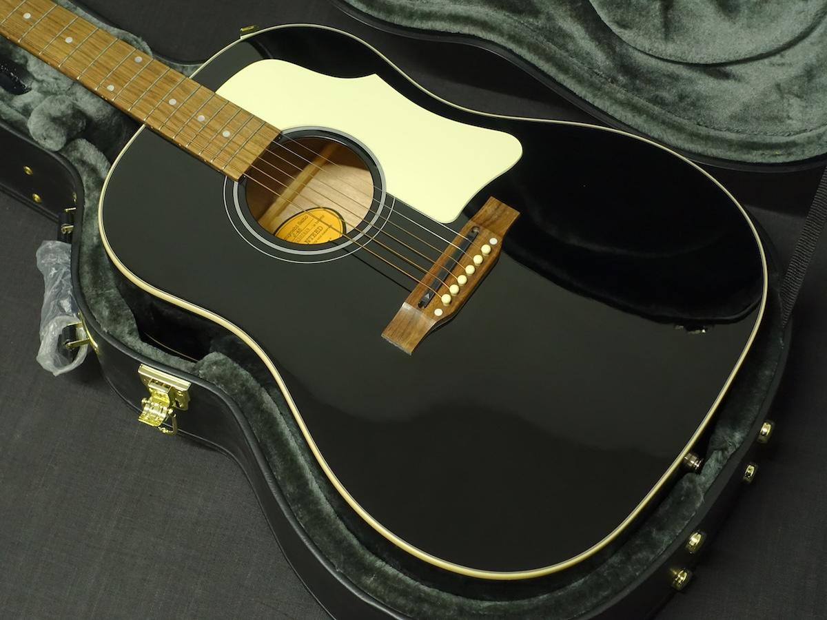 ボディ・トップには単板スプルース、サイド&バックにはマホガニーが使用され、エボニー・フィニッシュとクリーム色のピックガードのカラーマッチは、まさに斉藤和義氏のアイコニックなJ-45を再現しています。