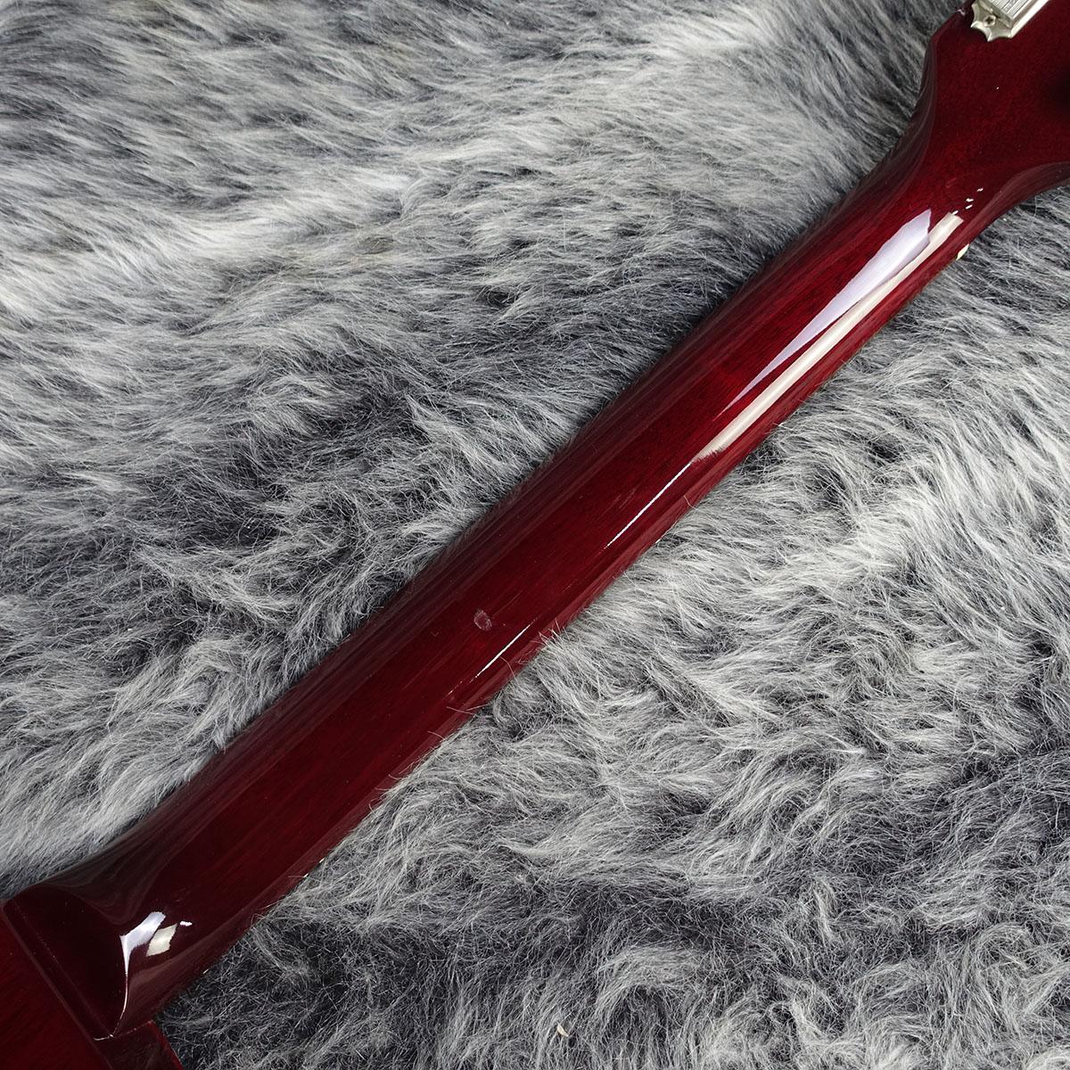 中古品につき全体に打痕や擦り傷、ハードウェア類にくすみや傷み、ネック裏およびヘッド裏先端にやや目立つ塗装の反応痕、ボディサイドに塗装のクラック等が見受けられるものの比較的キレイな外観をキープしています。