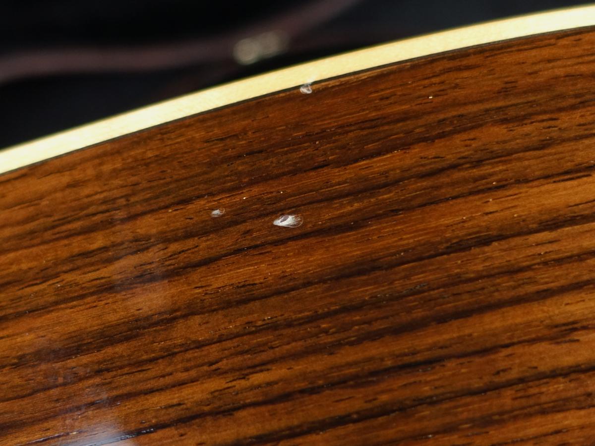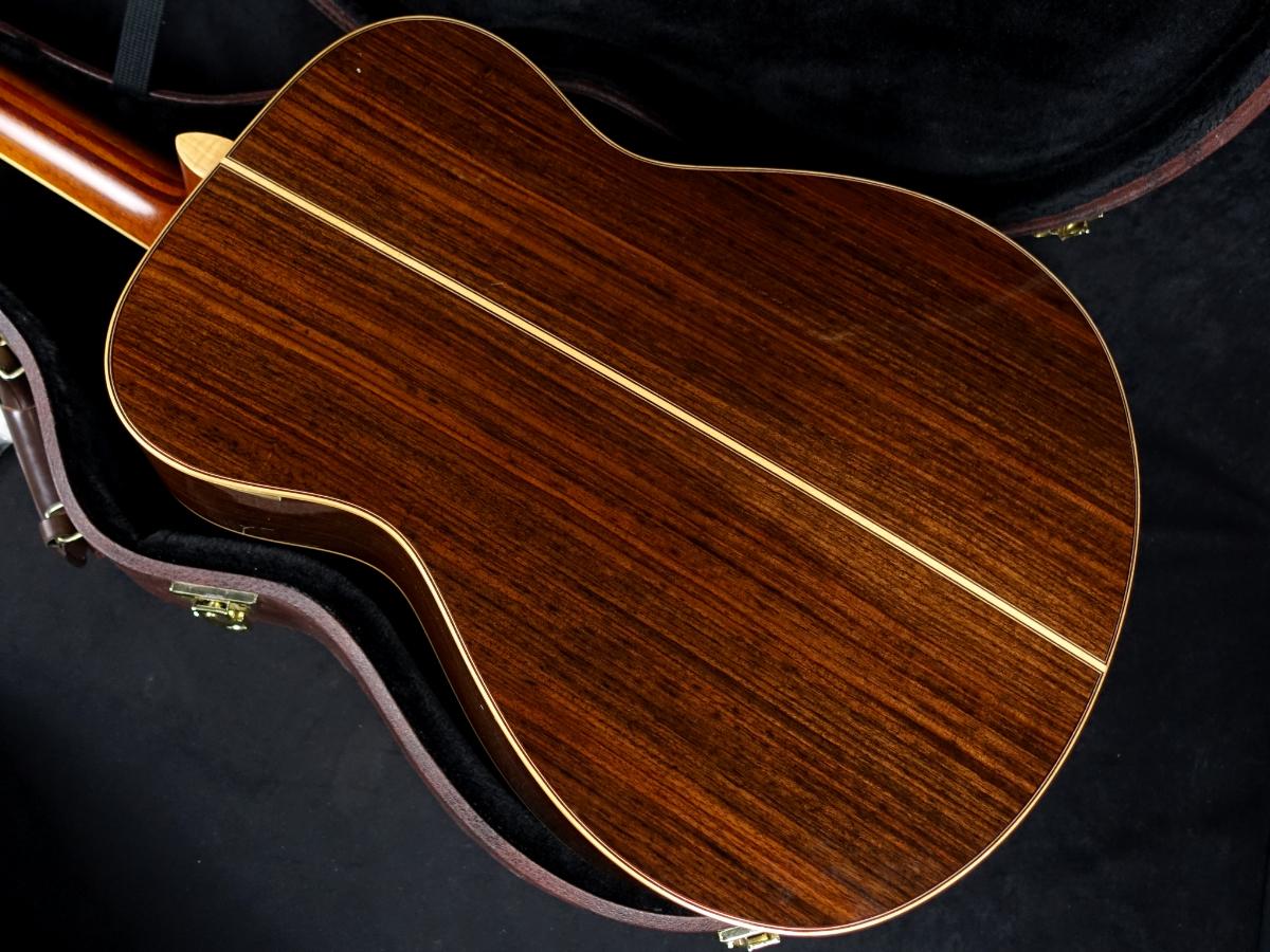 ウッドマテリアルは、スプルーストップにローズウッドサイドバック、マホガニー+ローズウッド5プライのネックにエボニー指板を採用。