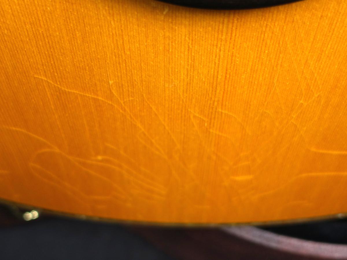 全体的に打痕、擦り傷、弾き傷、塗装クラック、木部の塗装の目痩せなど、ギター全体的に強い使用感が感じられるコンディションになっております。