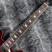ラミネートメイプル材を使用したセミホロウボディを採用し、程良い空気感のある鳴りとブランコタイプのテールピースらしい柔らかなテンション感。