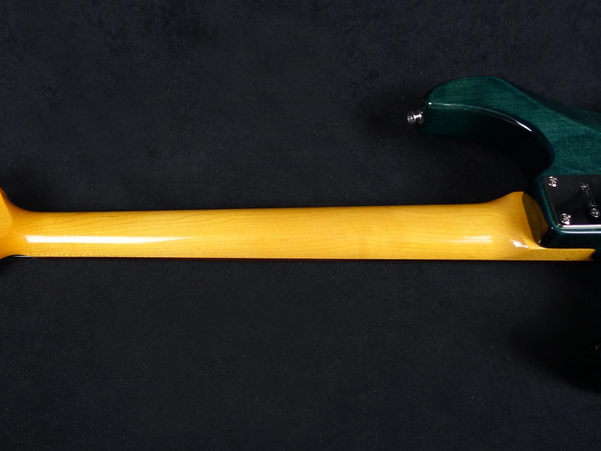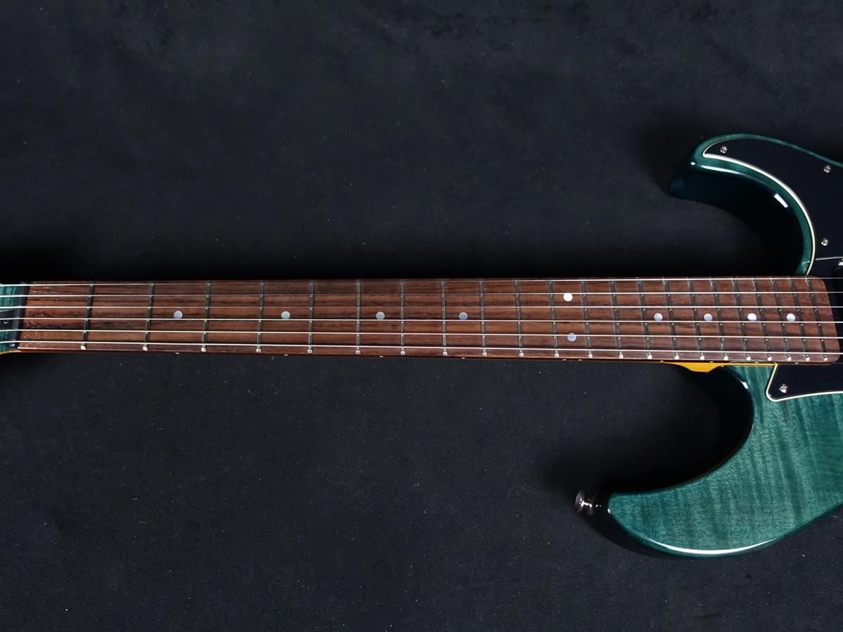 ウッドマテリアルはアルダーのボディ材にフレイム・メイプルの化粧板を採用し、ネック材はメイプルネック、ローズウッド指板を採用。