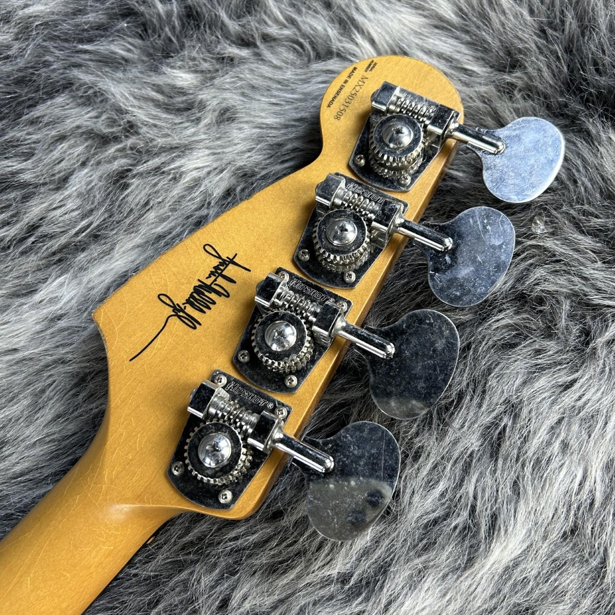 弾きやすさとスピードを追求したデザインのベースで、ステージ映えするスタイルを備えています。本人所有のオリジナルモデルのボディのキズから使い込まれたネックの擦り切れ具合まで、ツアーで得た数々の勲章まで細かく再現しています。