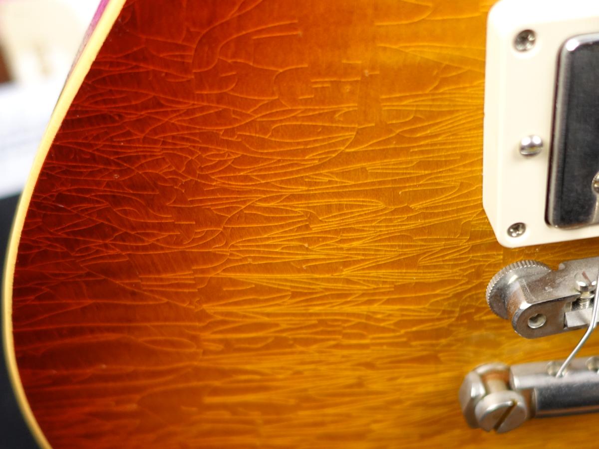 経時変化によりウェザーチェックと呼ばれるクラックを生じさせる、1950年代、1960年代のニトロセルロースラッカーを科学的に解析し、その変化のプロセスをひも解き、あらゆるモデルのプロトタイプによるテストを重ねて、ヴィンテージ同様のナチュラル・ウェザーチェックを再現するラッカー・プロセスを開発しました。