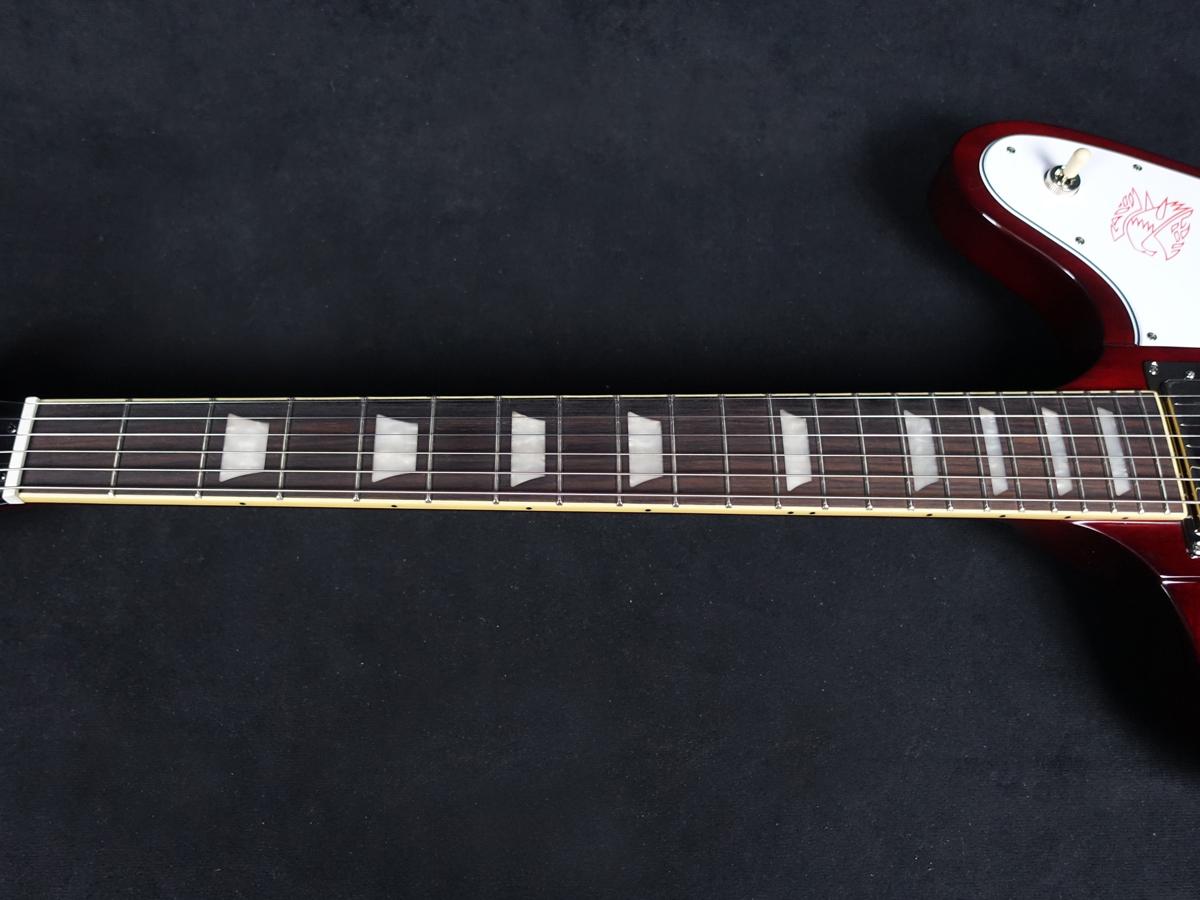 ピックガードには、赤色でホットスタンプされたアイコニックなFirebirdロゴがあしらわれています。