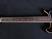 60sスタイルのカラマズー・ヘッドストックには、Grover Rotomaticチューナーを装備し、マザー・オブ・パールのエピフォン・ロゴがインレイされています。