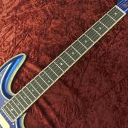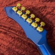 黒黒としたエボニー指板には比較的小ぶりな星型インレイが輝き、こちらもささやかながらゴージャスな意匠となっています。