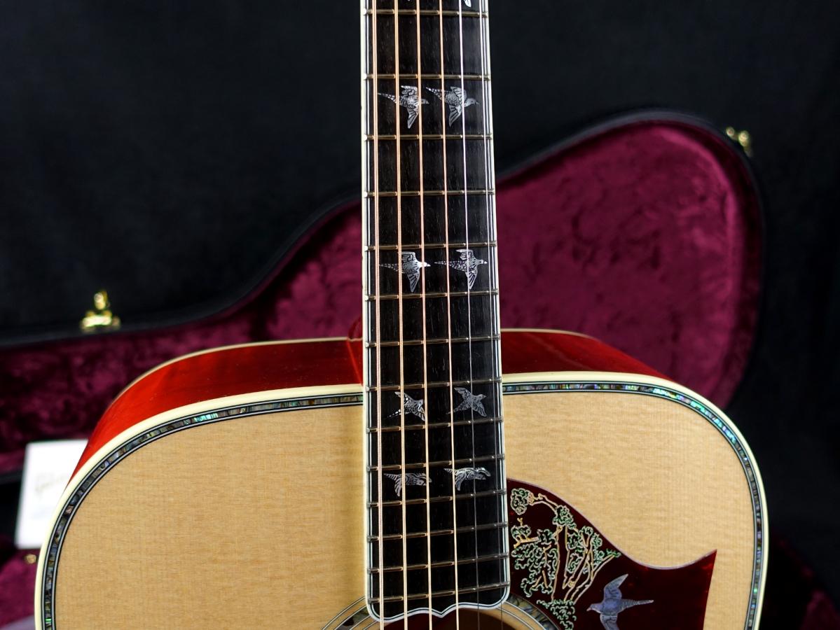 ヘッドストック上に7羽、指板上に16羽、ピックガード上に3羽、そしてブリッジベース上に2羽であり、それぞれが別々の表情をしている点が魅力です。