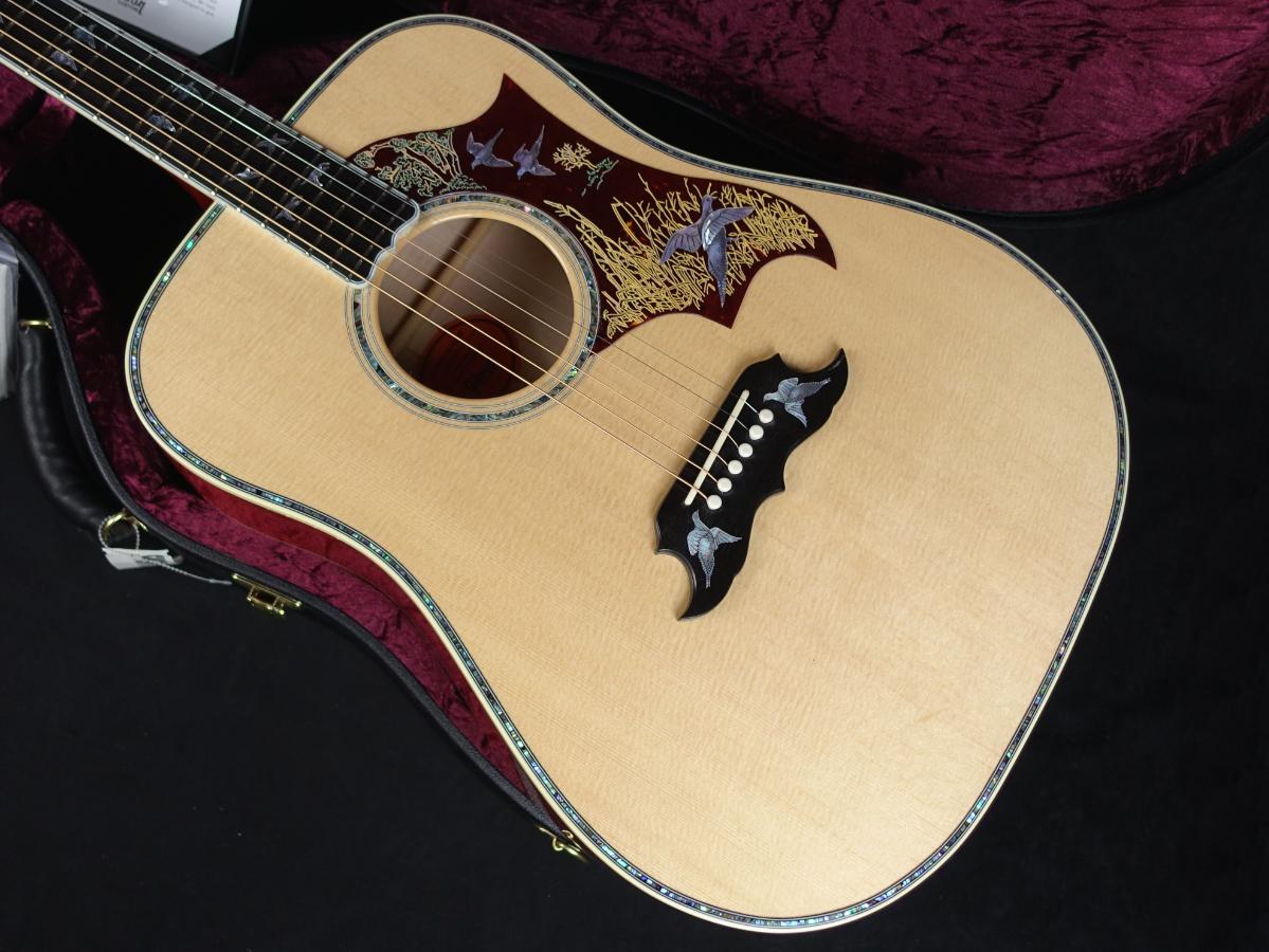 スクエアショルダー・ボディの伝統的なダヴ・シェイプに、トップ材にはシトカ・スプルース、サイド&バックにフレイム・メイプルを使用。