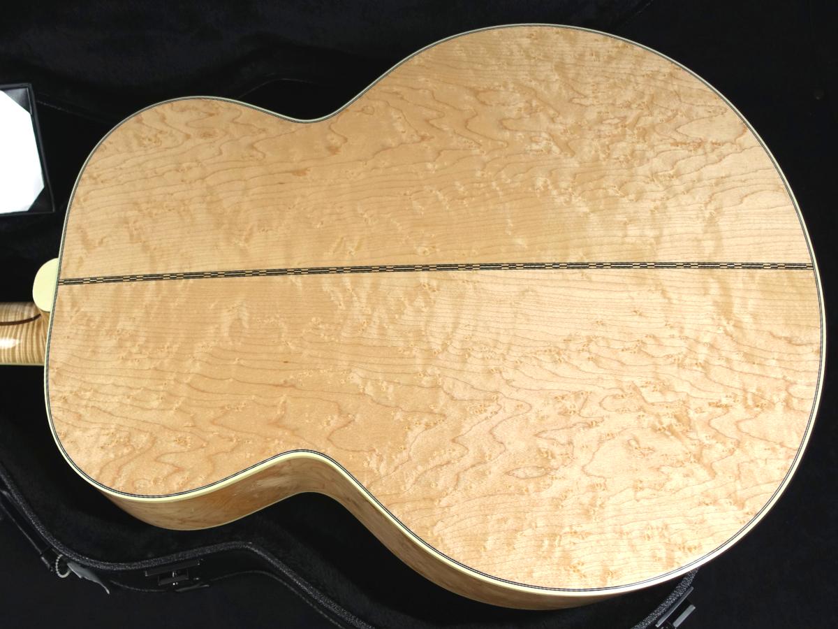 通常はSJ-200の戦後の標準的な仕様のスプルースとメイプルを採用しておりますが、本モデルは、厳選されたバーズアイ・メイプルサイドバックに、素晴らしいAAAシトカ・スプルースで美的レベルもさらに高めました。