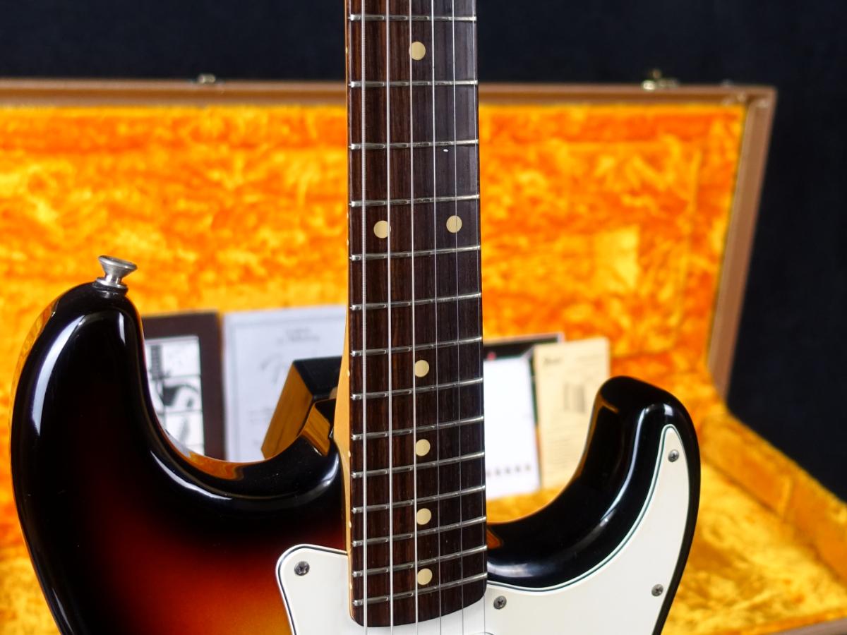 王道の3-Color SunburstをNOS仕上げられた60ストラト、ネックデイト&認定書から判断して1999年製の中古品です。
