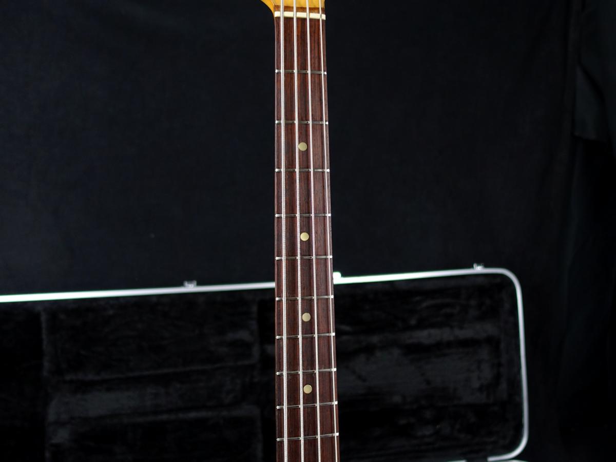 小ぶりで軽量なボディに、ショートスケールの弱いテンションとシングルコイルによるポコポコとしたイナタいサウンドが心地よく、気軽に使える可愛らしいベースをお探しの方にオススメの一本です。