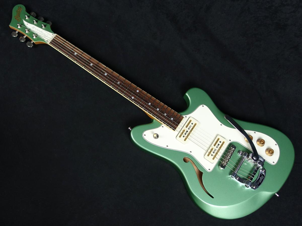 ルックス的にも非常にマッチしたビグスビーB50トレモロを搭載、Fホールを備えたセミホロー構造のボディーは、エルボー・カットを施してあり、演奏面にも気を配った構造となっております。