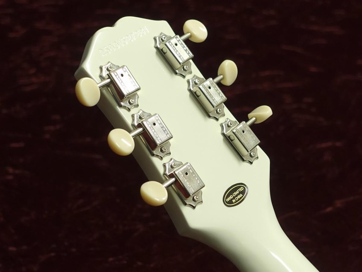 軽量なマホガニーボディにはエピフォン・オリジナルのミニハムバッカーを2基搭載。オールドエピフォン・ライクなビキニプレートも魅力的。