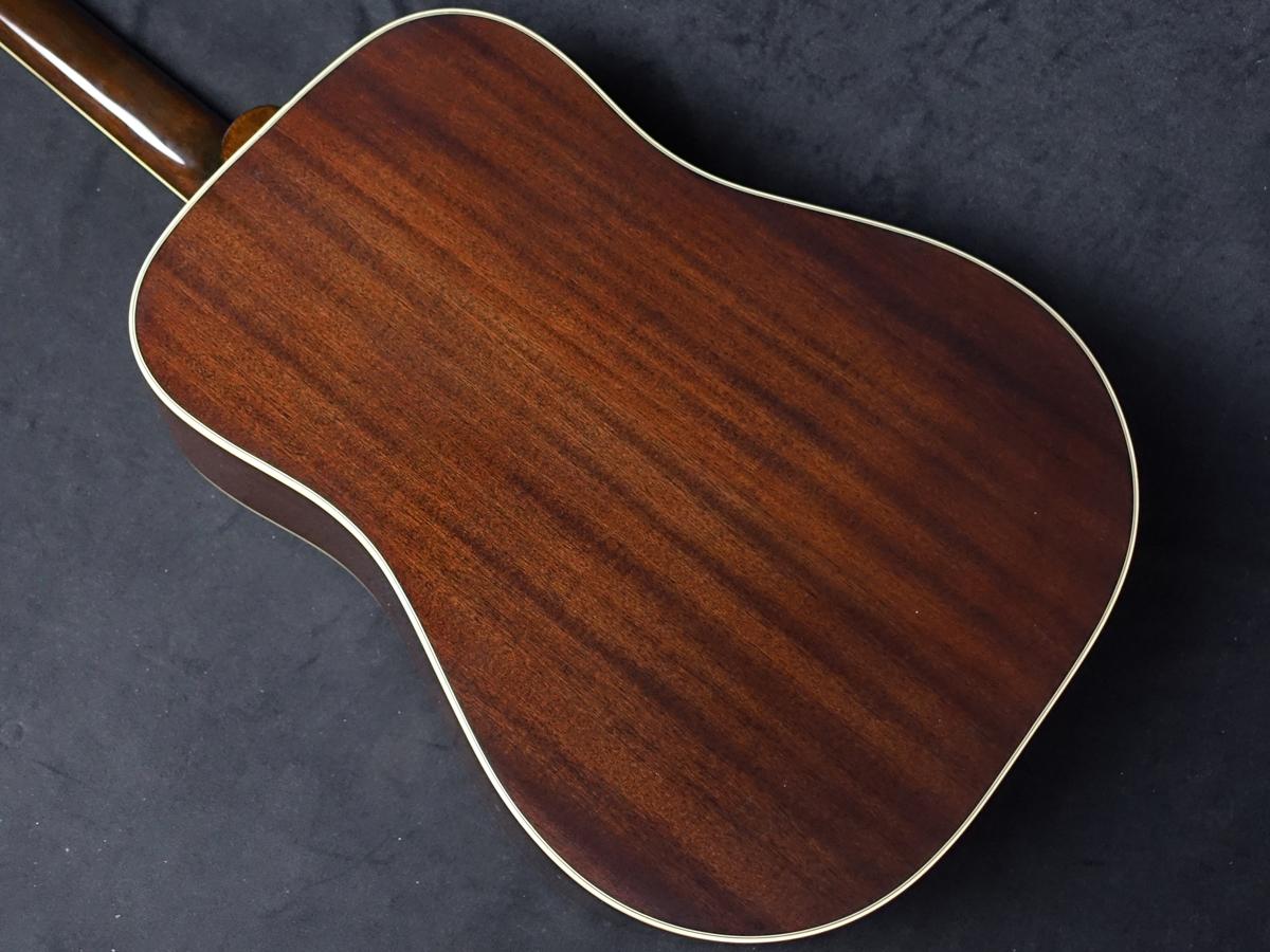 ボディマテリアルは、合板マホガニーボディ、トップには単板スプルースを使用。