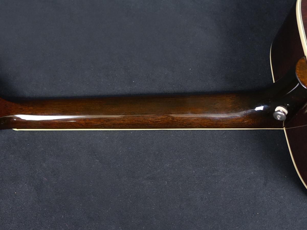 マホガニーネックは快適なプレイヤビリティを約束するラウンド C プロファイルで、もちろんダブテイルジョイントでボディに接合されています。