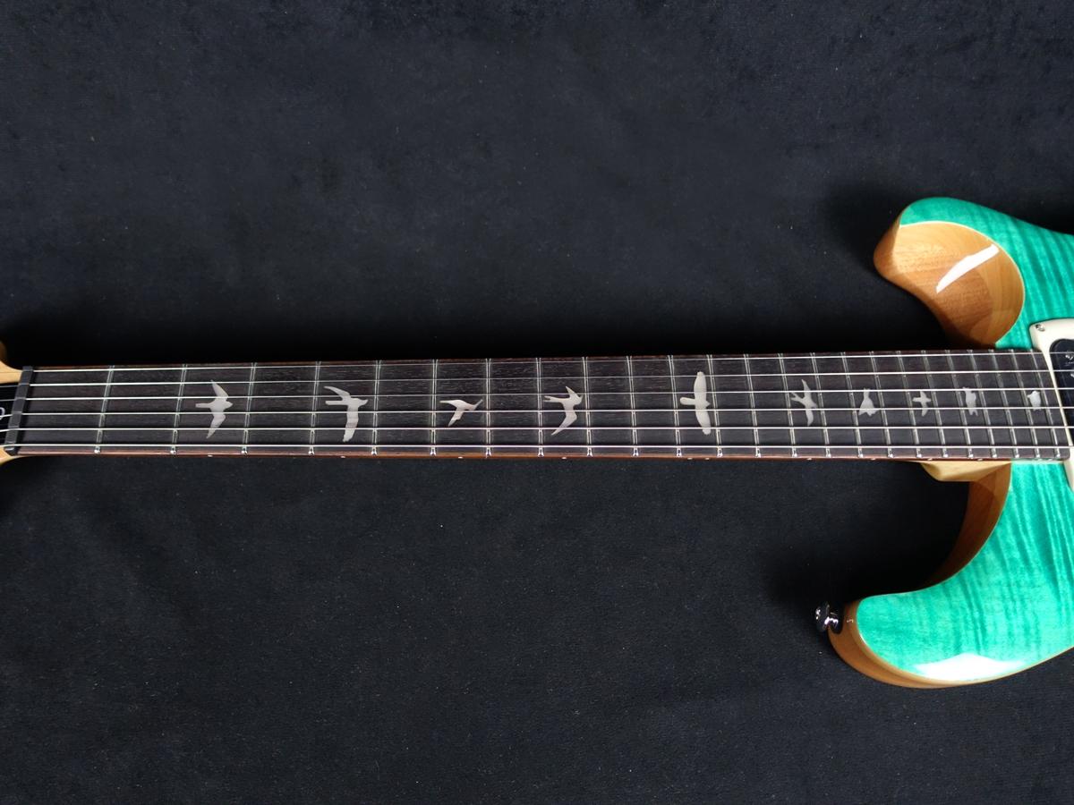 ブリッジ、またペグ、ピックアップは全てPRSデザイン。ネックシェイプはワイド・シンで弾きやすさを感じさせてくれます。