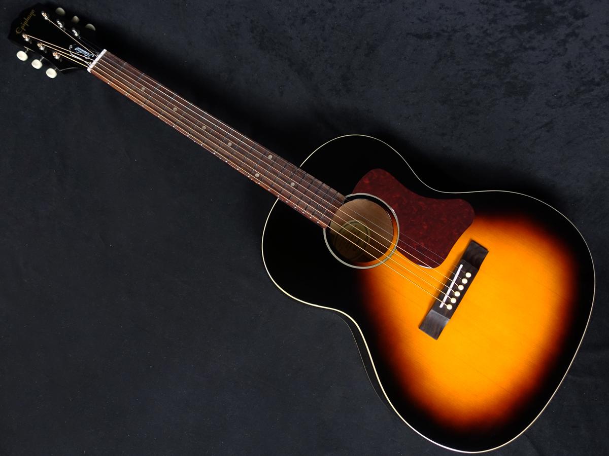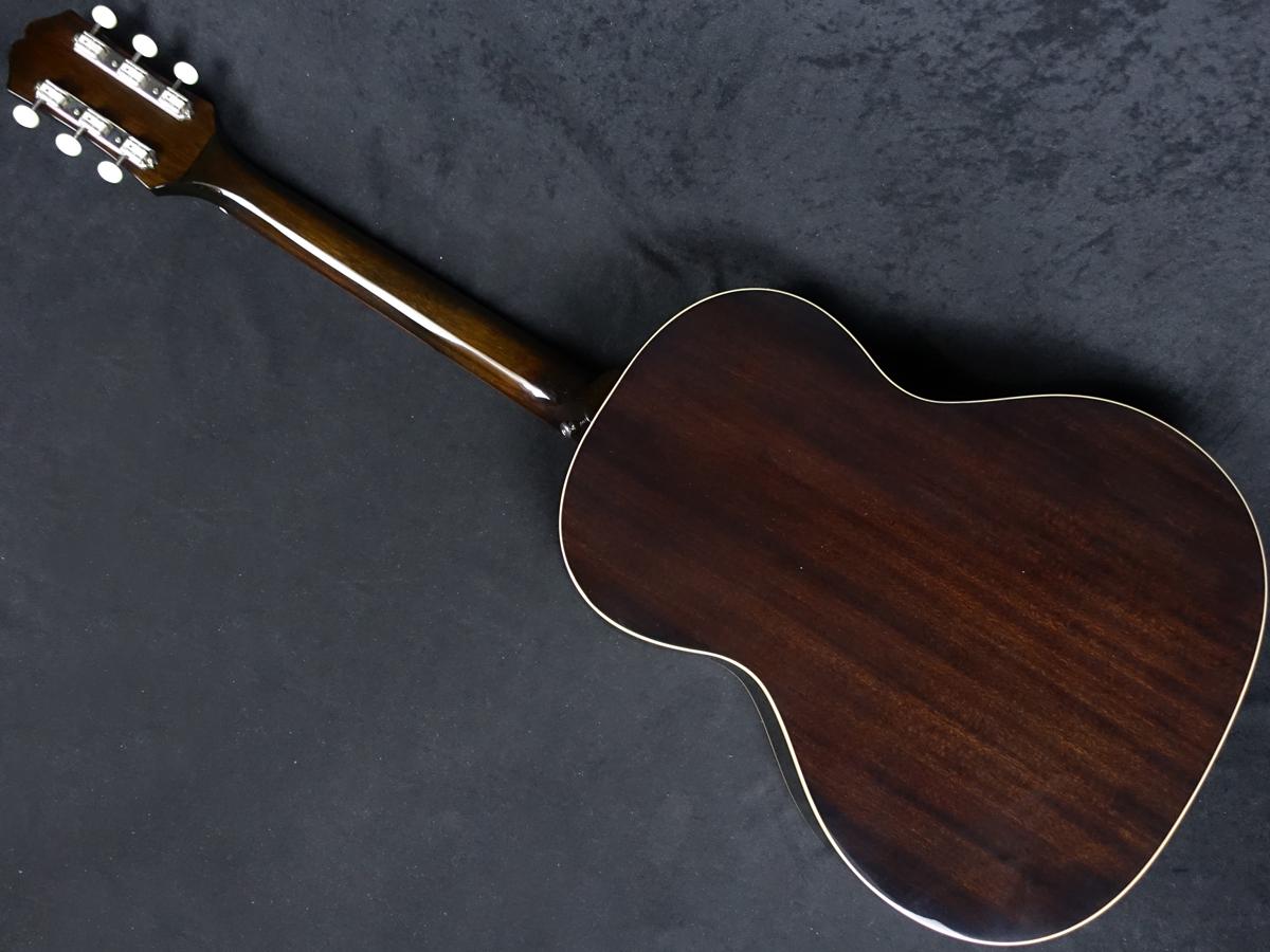 さらに、L-00モデルと同様のダークなトータスシェル柄のピックガード、アイボリー色のプラスチックボタンを備えた3連チューナー、そして金色のシルクスクリーンによるエピフォン・ロゴと60年代カラマズースタイルのヘッドストック等、ヴィンテージスタイルの趣を添えるディテールも施されています。