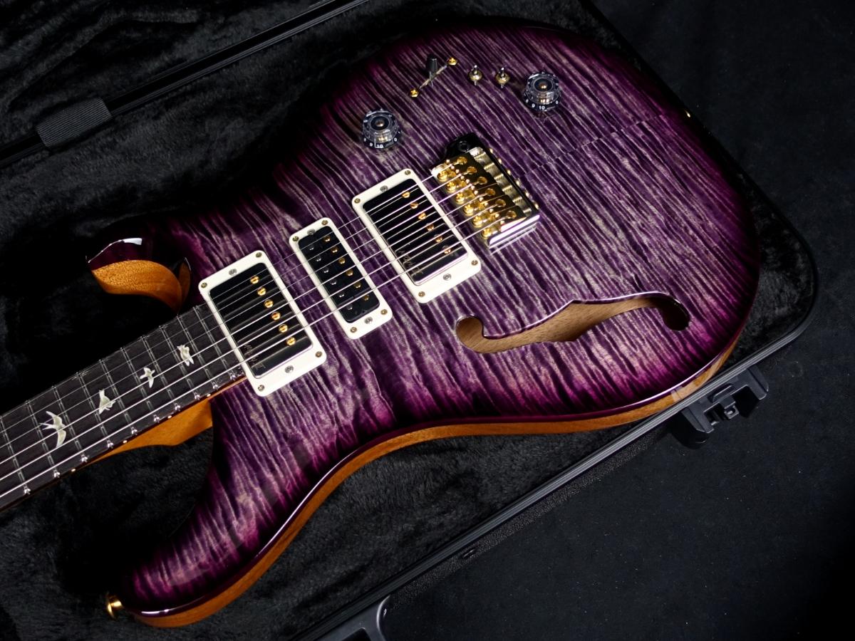その他のスペックとしては、メイプル・トップ、マホガニー・バック、22フレット & 25インチ・スケールのマホガニー・ネック、ローズウッド指板を採用し、Phase IIIロッキング・チューナーとPRSオリジナル・デザインのGen IIIトレモロ・ユニットを搭載。ハムバッカーとシングル・コイルの音量差を抑えつつ、fホールを持つセミ・ホロウ・ボディ構造は、ギターのトーンに心地良い空気感と深みを与えます。