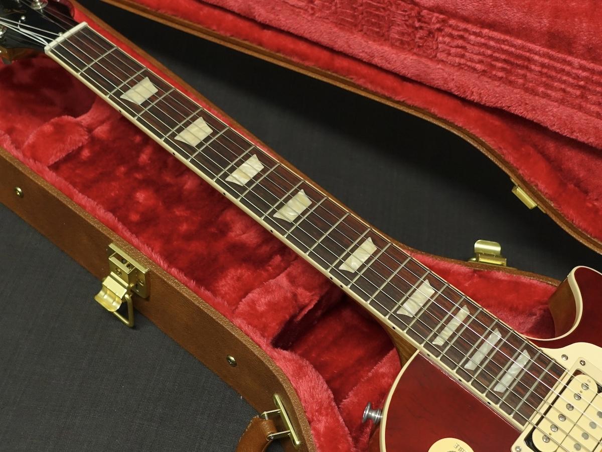 硬質なメイプルトップでノンウェイトリリーフ仕様ながら4キロ切ったTHEレスポールサウンドの一本。赤黒しいローズ個体も魅力的。