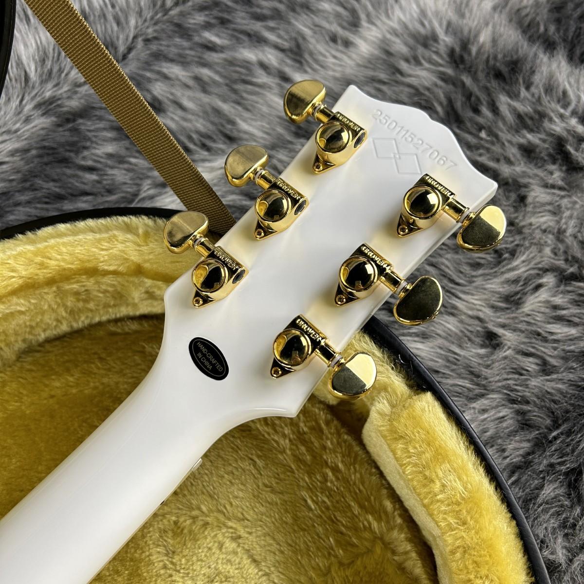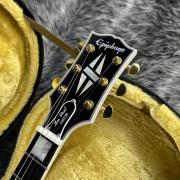 ギブソンスタイルのオープンブックヘッドストックの上面には、マザーオブパールスプリットダイヤモンドインレイとエピフォンロゴのインレイがあしらわれ、ギア比18:1のGrover Locking Rotomaticチューナーを含むゴールドハードウェア等、目を引く仕様に溢れています。
