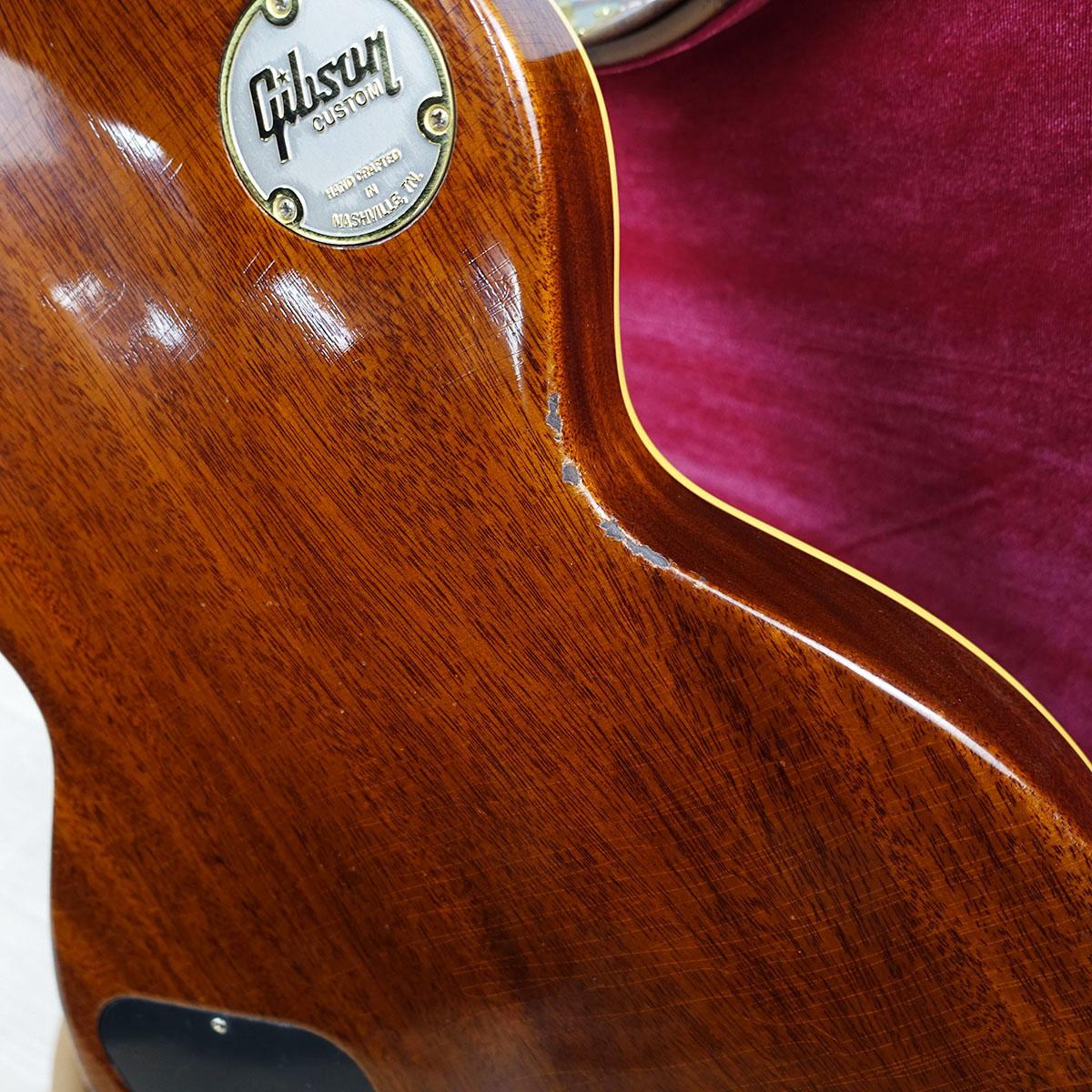 2019年にリファインされリアルさを増した“Gibson”&“Les Paul”ロゴ、リアルな色味に変わったディッシュインレイの採用による外観上のブラッシュアップやアンポッテッドのカスタムバッカー、ヴィンテージライクなキャパシターやポットを搭載。