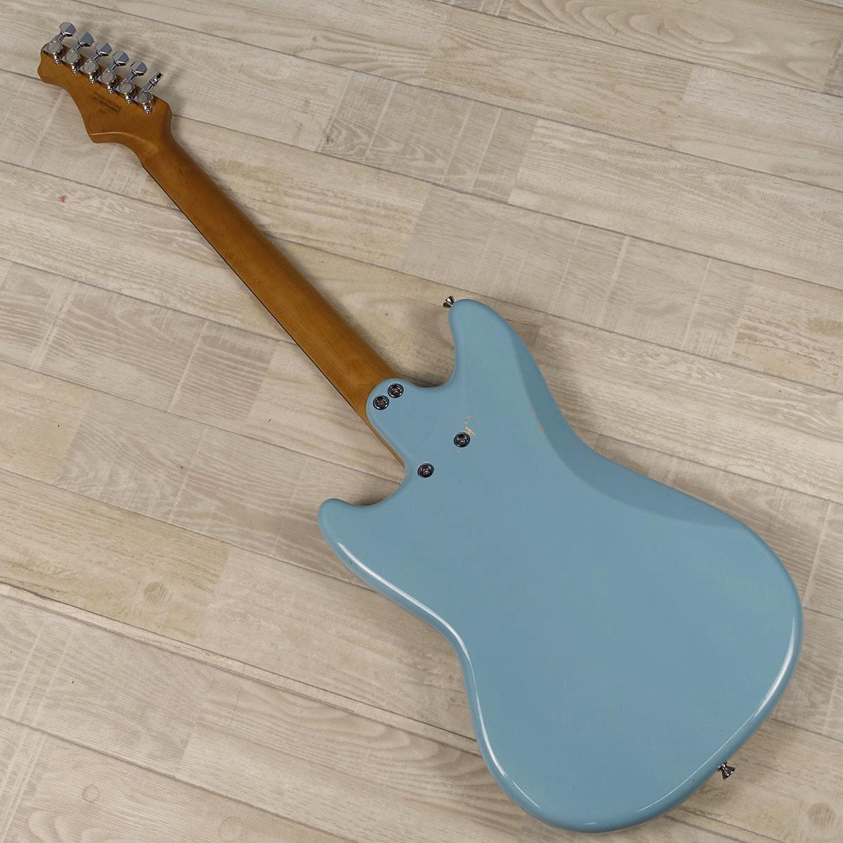 「Trad MG」は弦長610mmというショートスケールを採用した、ムスタング型のモデル。操作系は3WAY+1V1Tとシンプルにまとめられ、ボディ裏とエルボー部分にコンター加工が施され、直感的な演奏性と良好な構え心地が得られます。ブリッジ部はムスタングのチャームポイントであるダイナミックトレモロ型ですが、TOMブリッジを採用することで音響性と安定性を高めています。