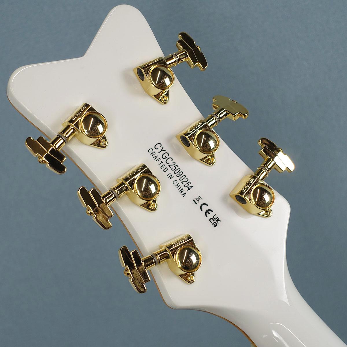 ネックには快適な握り心地のSoft "C"シェイプを採用し、美しいエボニー指板、ミディアムジャンボフレット、ボーンナット、そしてパーロイドNeo-Classicサムネイルインレイを備え、上質な演奏性・音質・外観を実現しています。