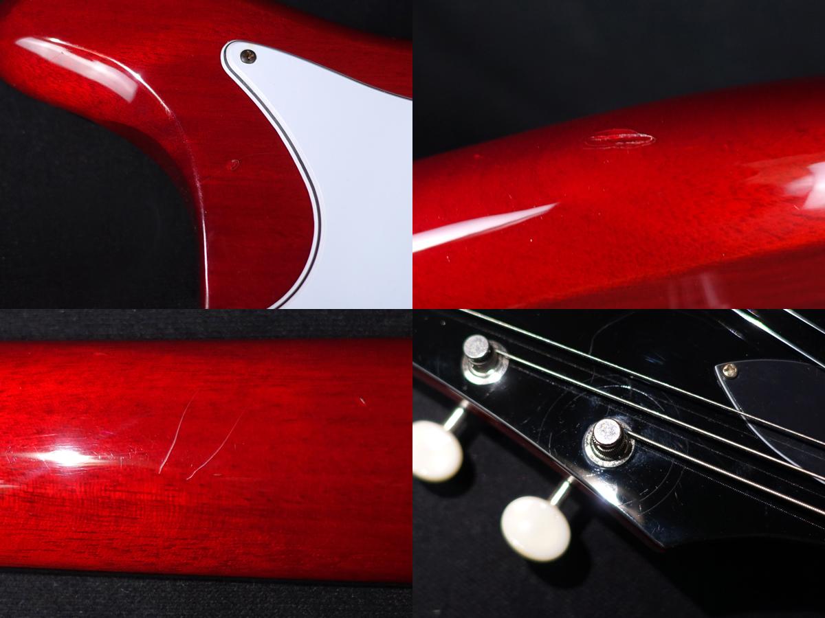 指板に付着した汚れが原因と考えられる指板やけが見受けられる他、使用に伴う細かな弾きキズやポツポツ打痕、パーツのくすみが見受けられる等、年式相応の使用感があります。