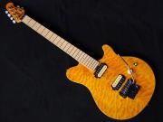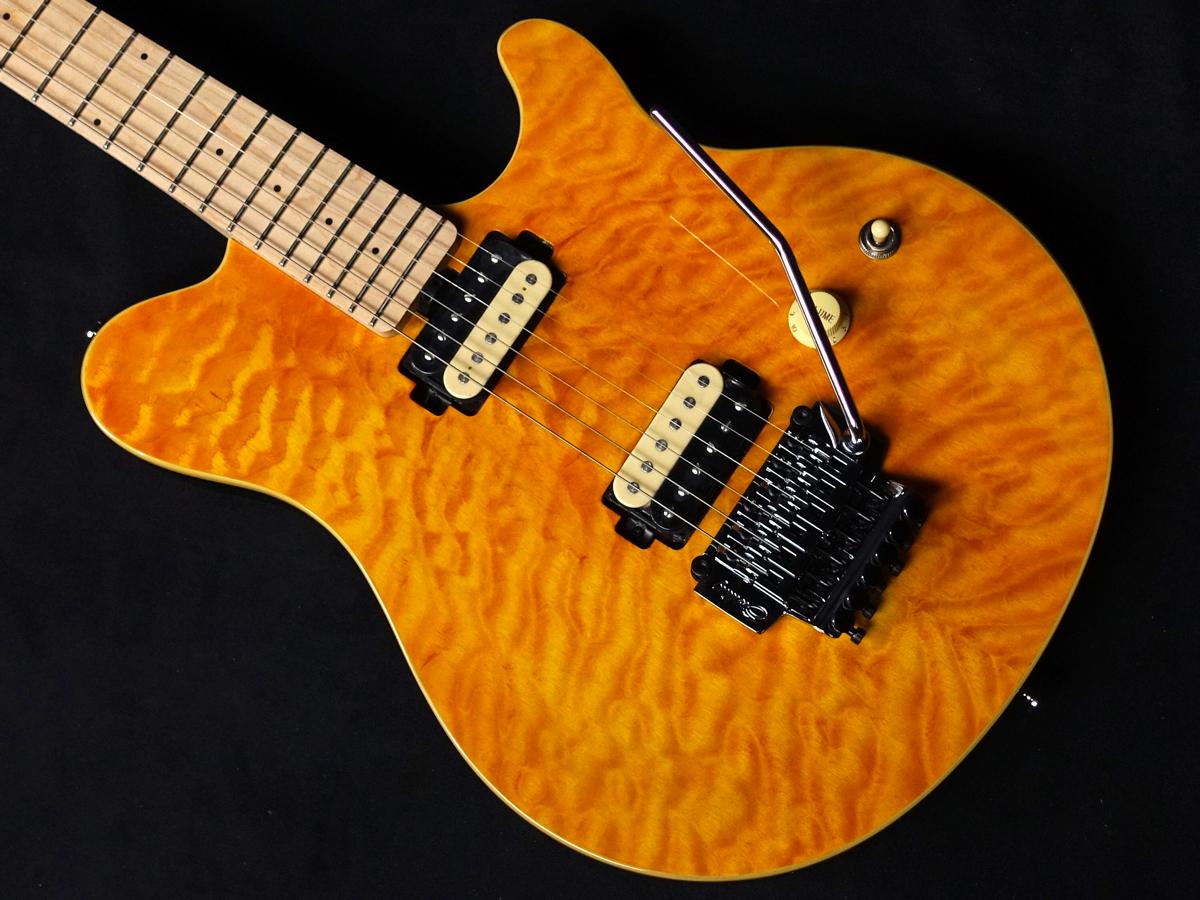 オリジナルのバスウッドボディに華やかなキルトメイプルをラミネートした華やかなルックス。