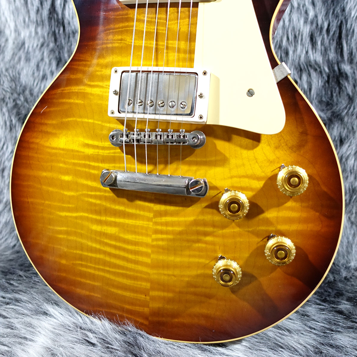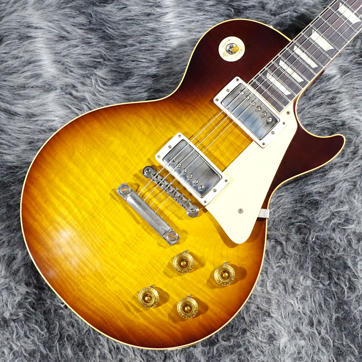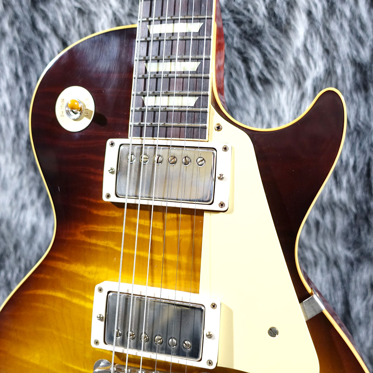 ボディのディテールは勿論のこと、よりヴィンテージに近づいたおおらかなフォントのGibsonロゴや研究が重ねられた各リイシューパーツまで、極限までブラッシュアップが施された究極の59リイシューです!