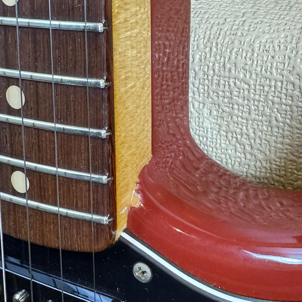 流石に少しの使用感やフェンダーギターでは宿命とも言えるジョイント脇の塗装チップ等見られますが、製造から20年経過しているとは思えないほど美しい外観をキープしております。