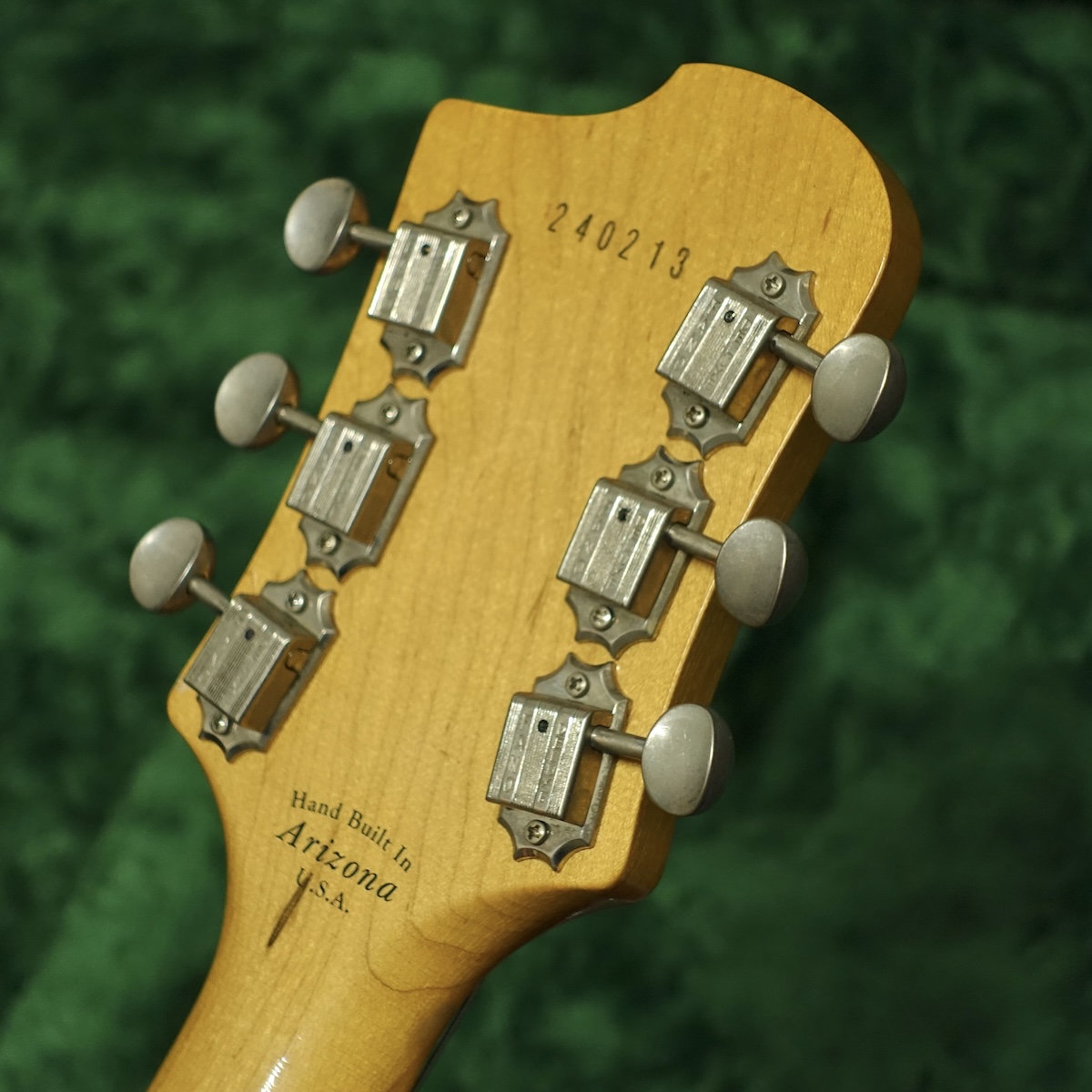 もとよりエイジングが施されているため、使用によるダメージの判別は困難ですが、フレットはほとんど減っておりませんので、あまり使用されなかったように見受けられます。
