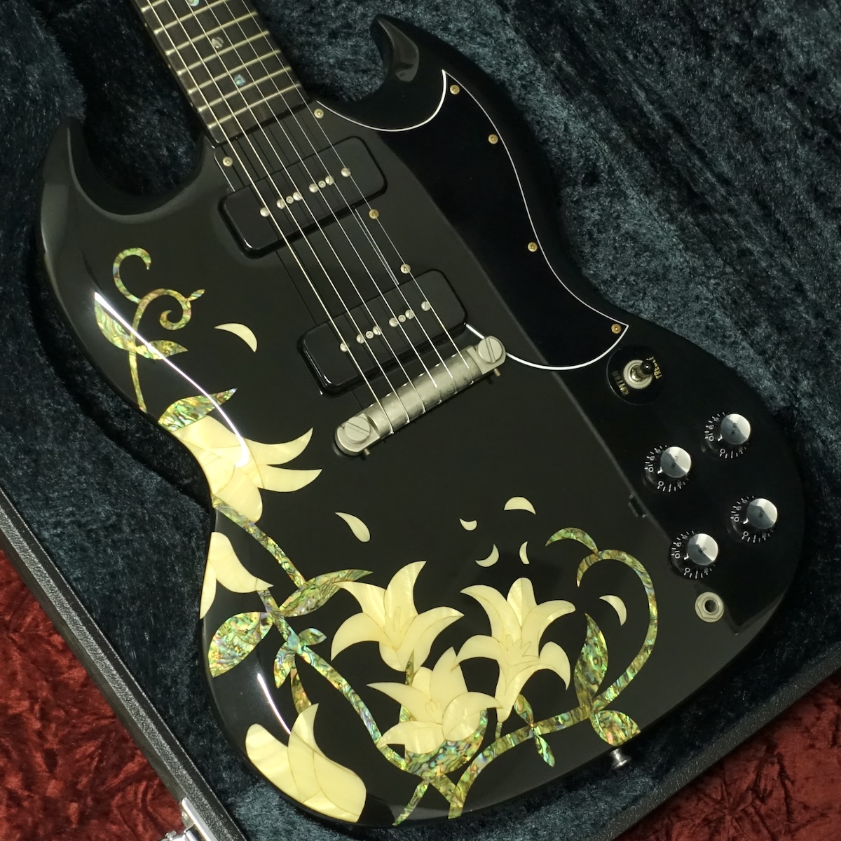 ボディトップにはメキシコアバロンと白蝶貝を使用した百合モチーフの豪華なインレイを施し、サイドポジションには蓄光素材Luminlayを採用するなど、デザイン性と実用性を高いレベルで両立しています。
