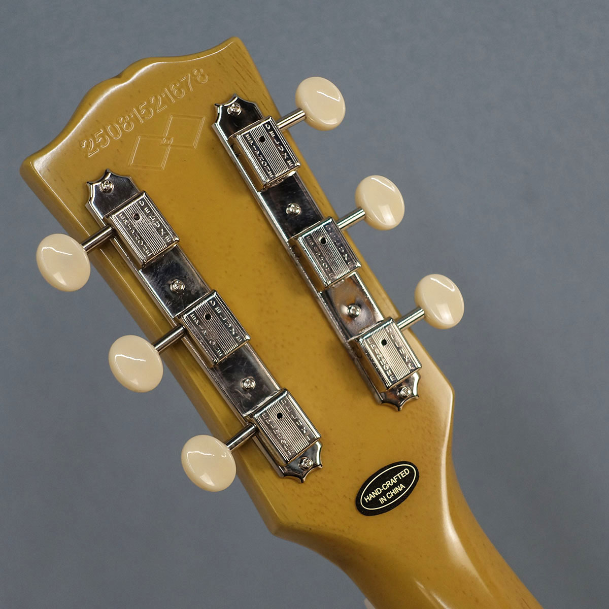 ギブソン・スタイルの“オープンブック”ヘッドストックには、Epiphone Deluxe 3連チューナー(ホワイトボタン付き)を搭載。