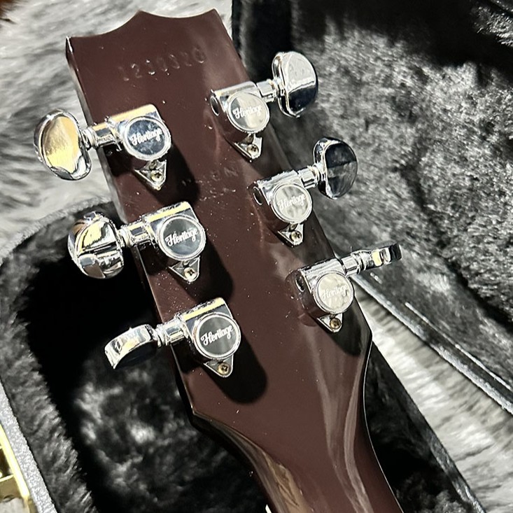 メイプルトップ、ジェニュイン・マホガニーバックのボディにジェニュイン・マホガニーネックのディープジョイント仕様を採用。