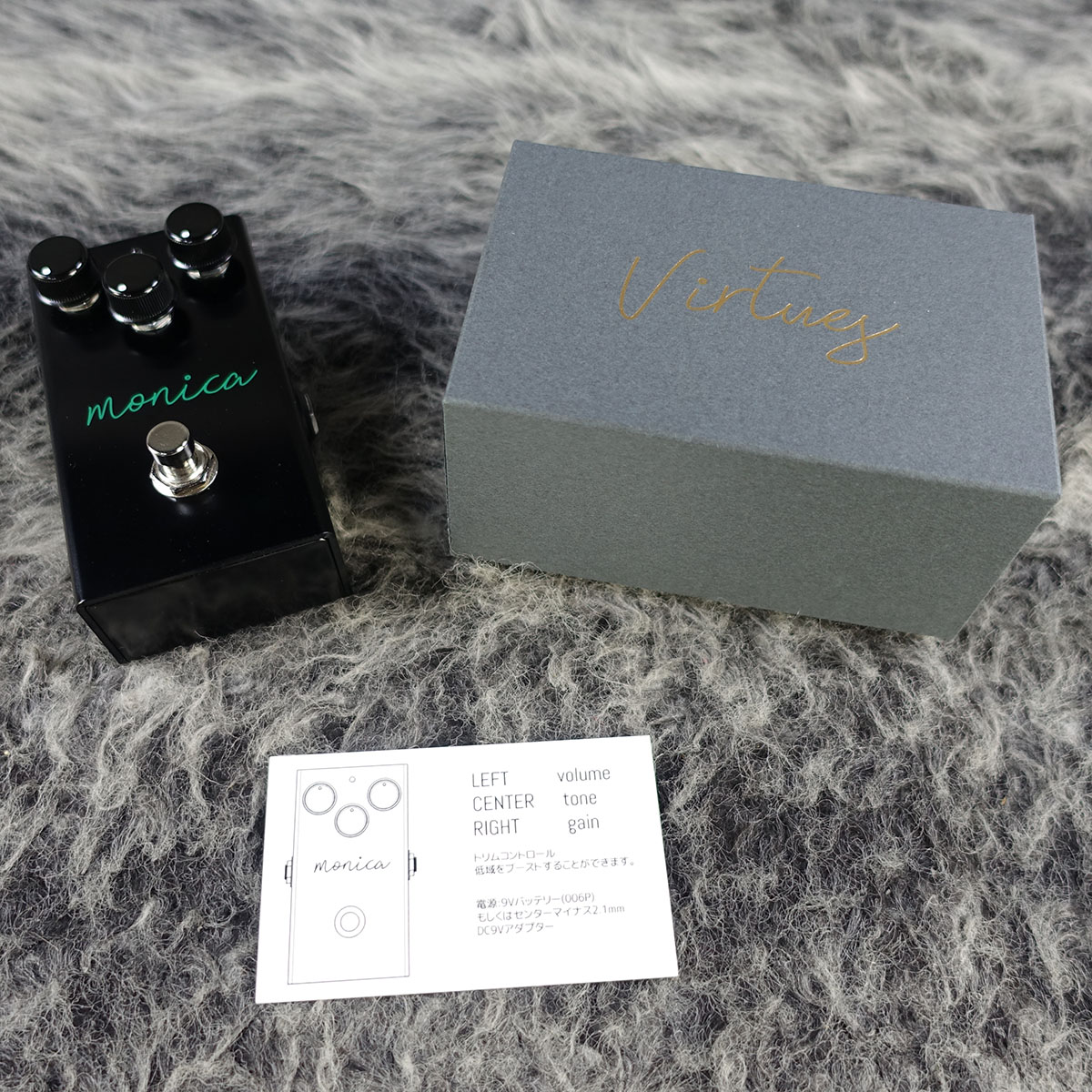 monicaはVirtuesのフラッグシップ・モデルであり、どのようなギター/アンプでもマッチングすることができる稀有なオーバードライブです。