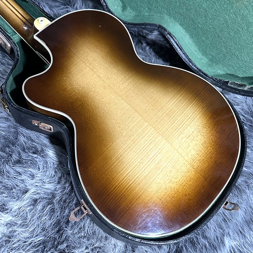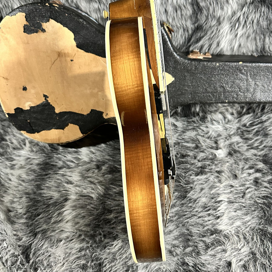 見た目からの判断ですがスプルーストップ、メイプルサイドバック、エボニー指板、メイプルを使用した5Pネックのウッドマテリアル。