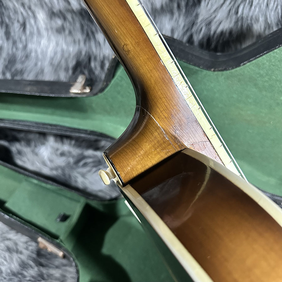 ネックジョイントに補修跡がございます。特に演奏性には問題ございません。