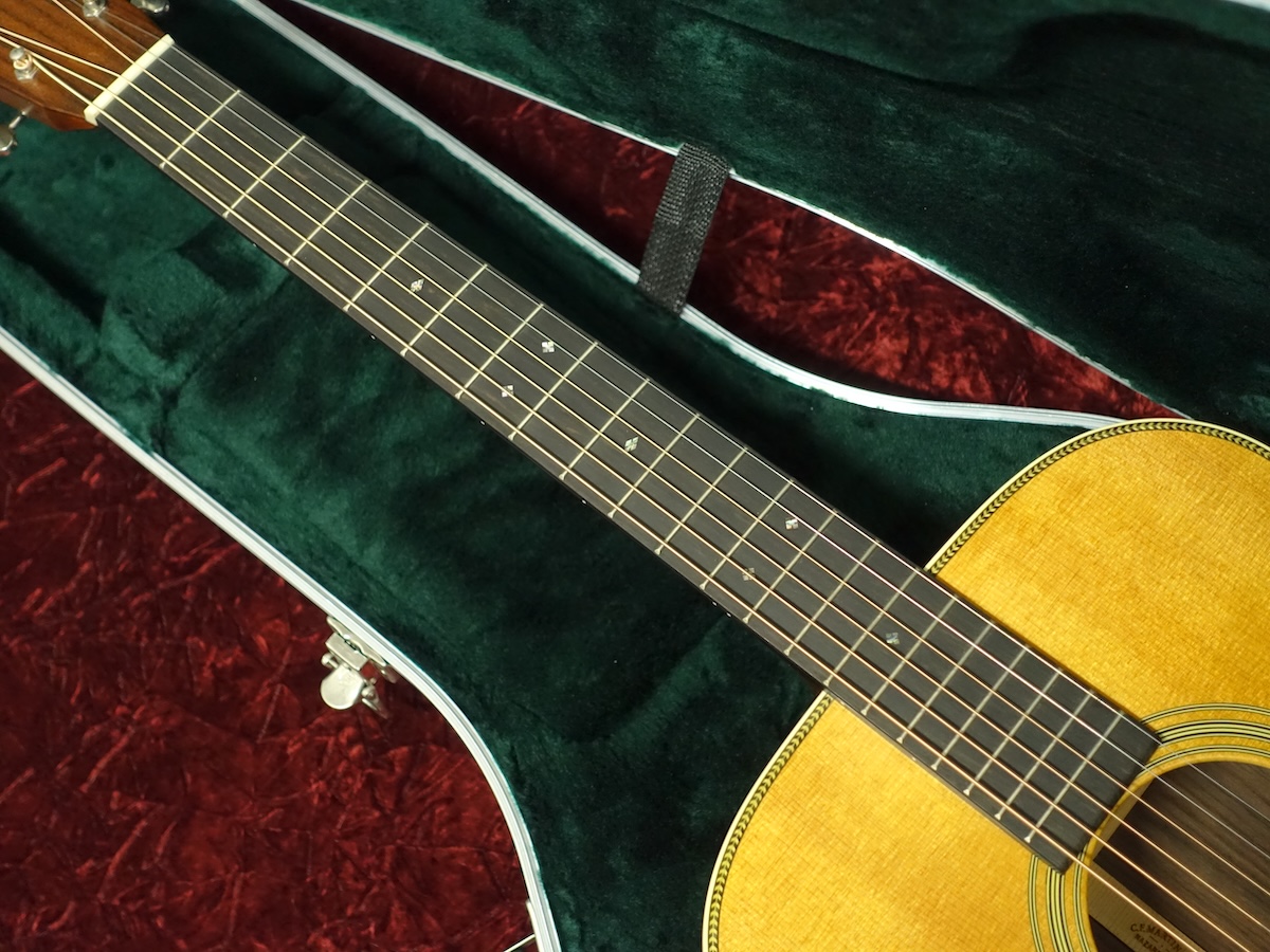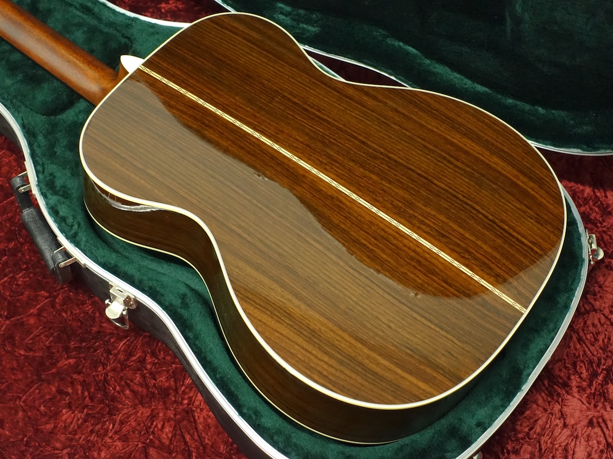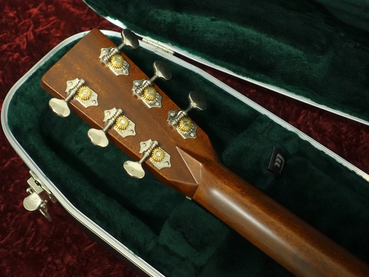 シトカ・スプルーストップ、ローズウッドサイド&バックの000ボディににセレクトハードッドネック&エボニーフィンガーボードを組み合わせた定番のウッドマテリアル。オープンバックペグ、ベッコウ柄のピックガード、ヘリンボーントリム等を採用したヴィンテージテイスト溢れるルックスが魅力的なモデルです。