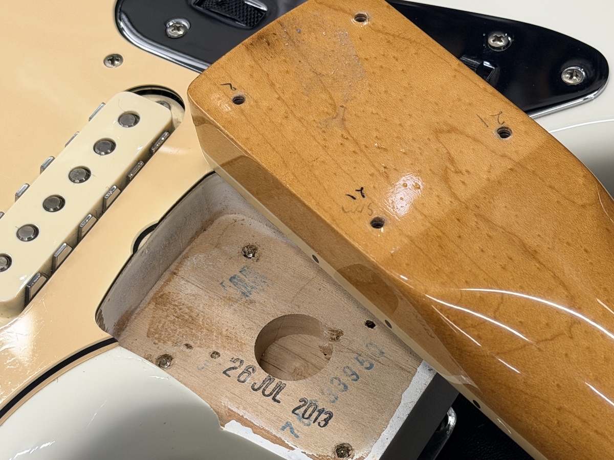 シリアルナンバーやネックデイトから2013年製で、塗装の変色や弾き傷等の使用感がしっかりと見受けられる外観状態です。フレットも全体的にしっかりと使用感があり、ローポジションでは凹みが目立ち6~7割程度の残量でございます。