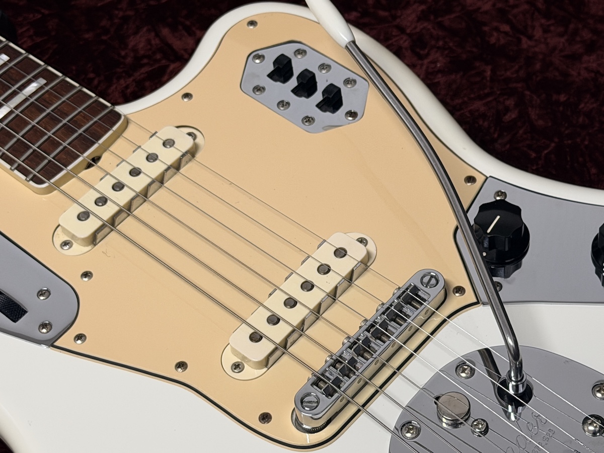 ピックアップは「Special Design Hot Single-Coil Jaguar」を搭載。ピックアップセレクトのスライドスイッチはダウンすることで作動する、通常とは逆の仕様となっています。