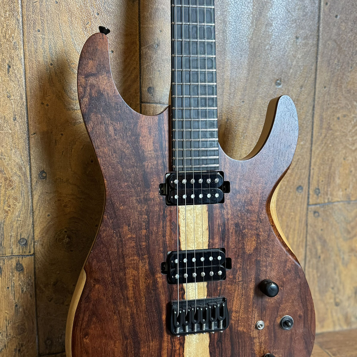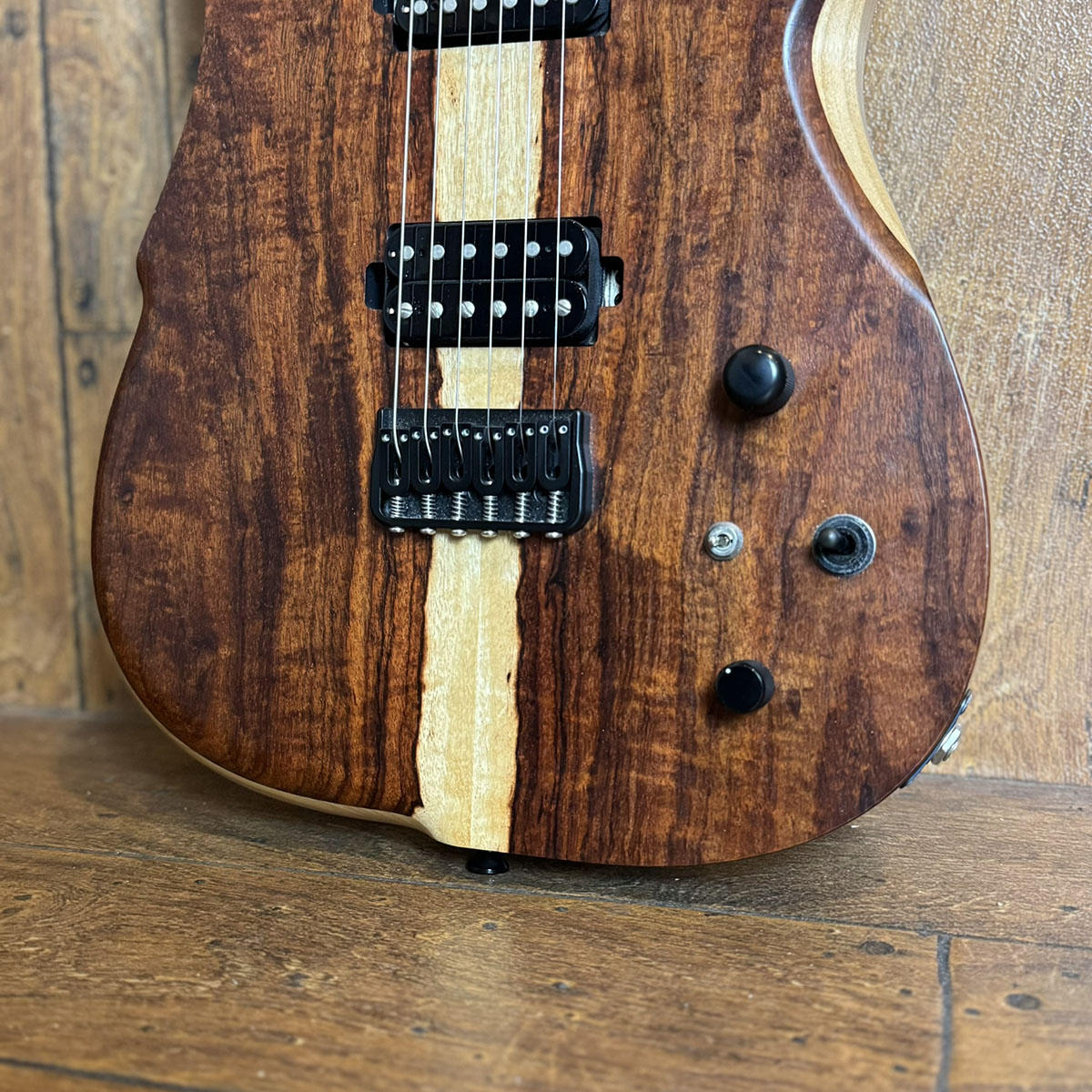 電装系は2基のオリジナルハムバッカーにコイルタップスイッチも備わっています。