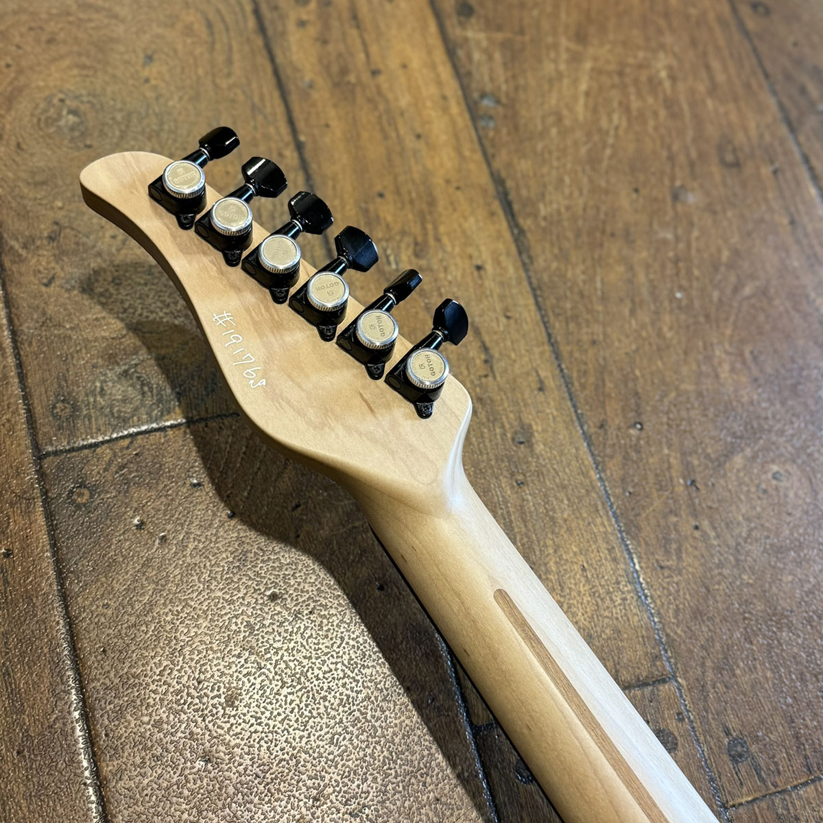 スペックシートがないためマテリアルは目視での確認となりますが、ボディトップにはサップの入った高級感のあるウォルナット、バック材はアルダーが採用されています。