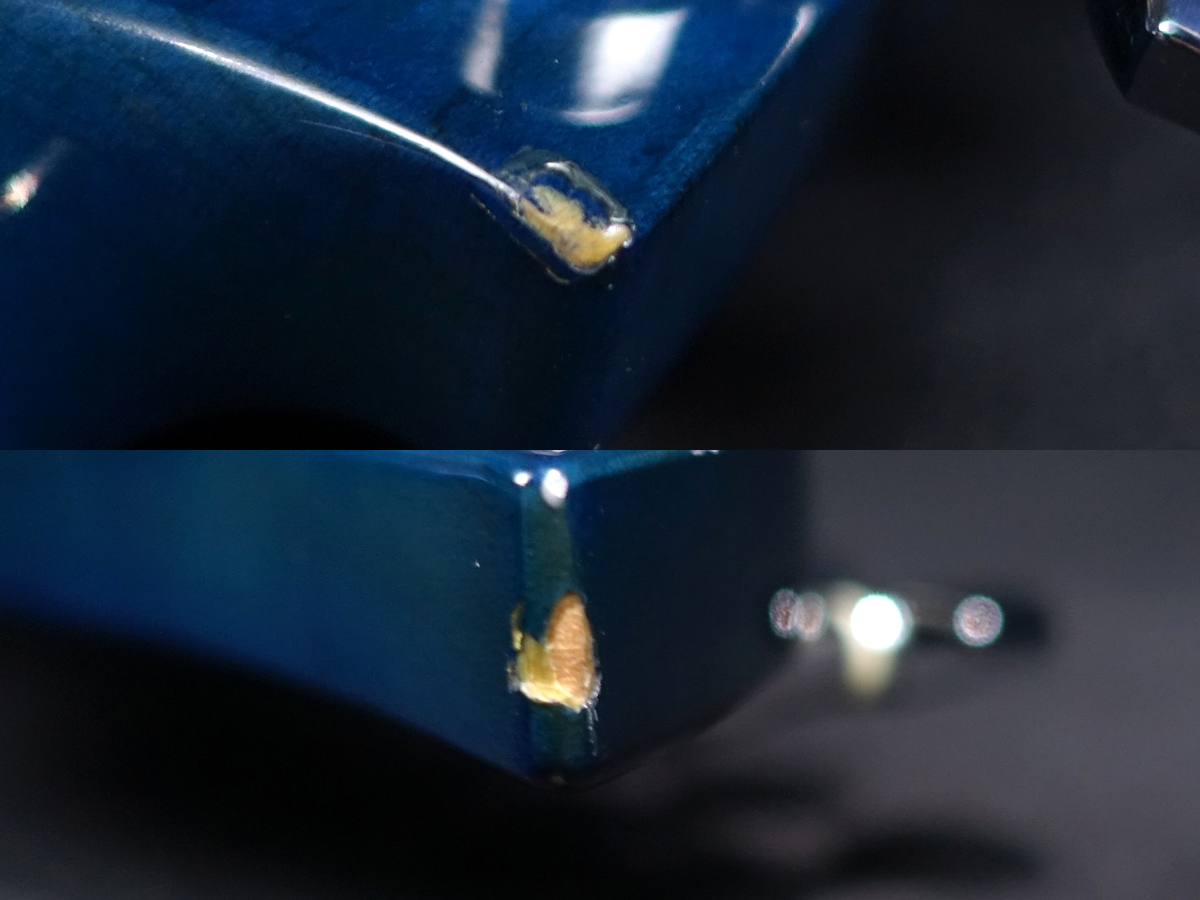 ヘッドエッジに宿命的な塗装欠け、ボディ全体にアルミ特有の経年変化による表面のザラつき/凹凸/塗装の反応跡が散見される他、パーツのくすみが見受けられる等、年式相応の使用感があります。