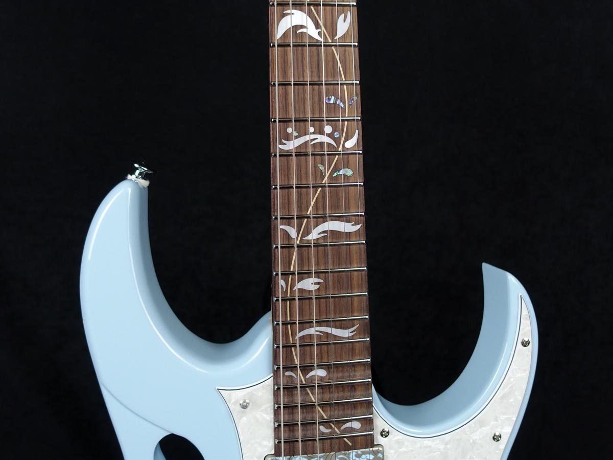 アルダーボディにネックにはPIA5pc Maple/Walnut neckを採用。またハイ・フレット部分をスクープするように加工したスキャロップド指板を採用しています。