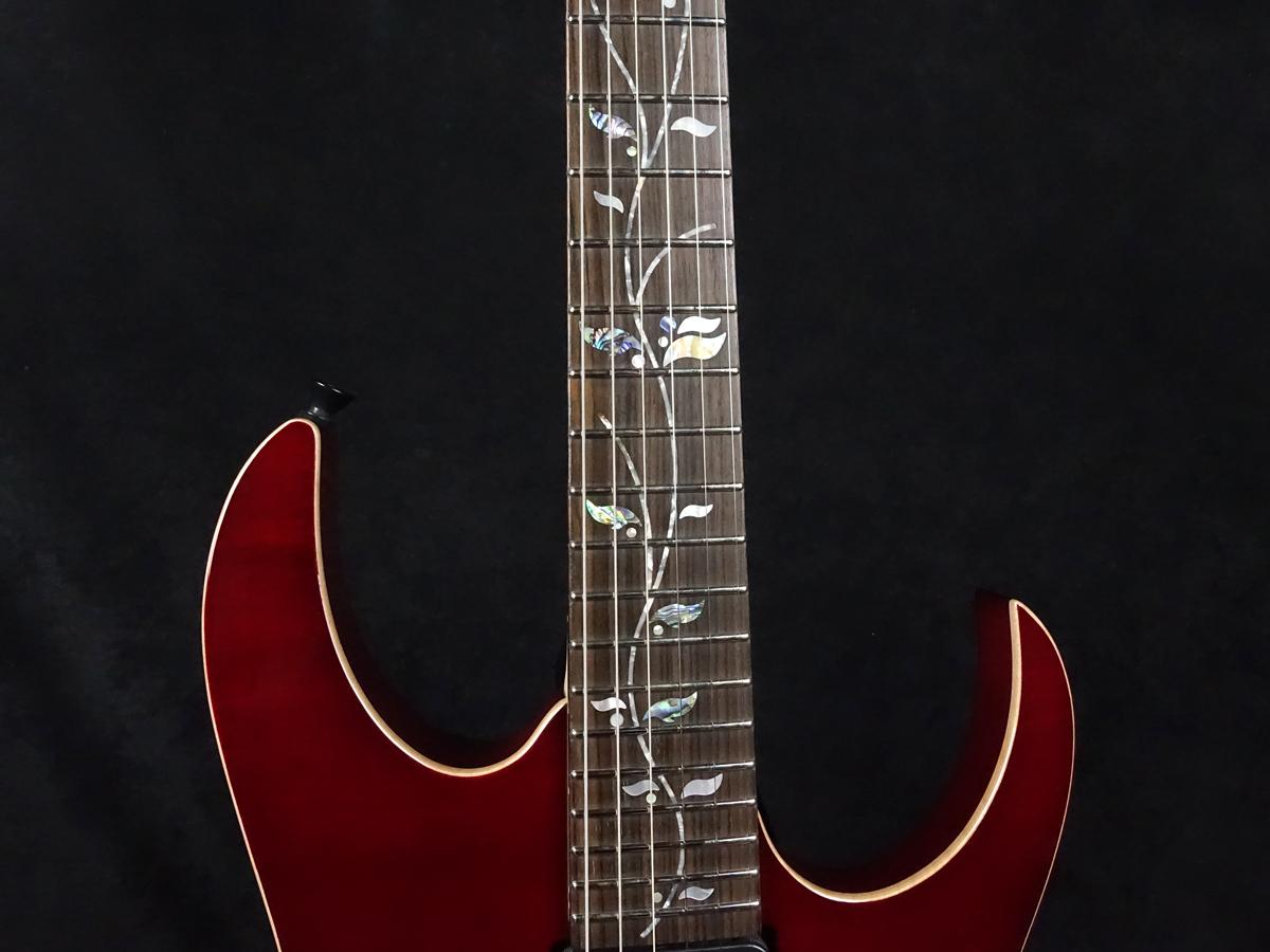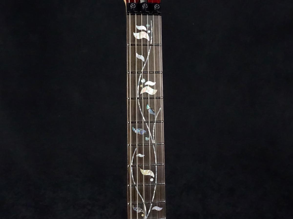 硬質で優れた反応性を持つマカッサル・エボニー材に、J.Customデザインの象徴のひとつでもあるポジション・インレイ「ツリー・オブ・ライフ」が映える、特別な指板になっております。